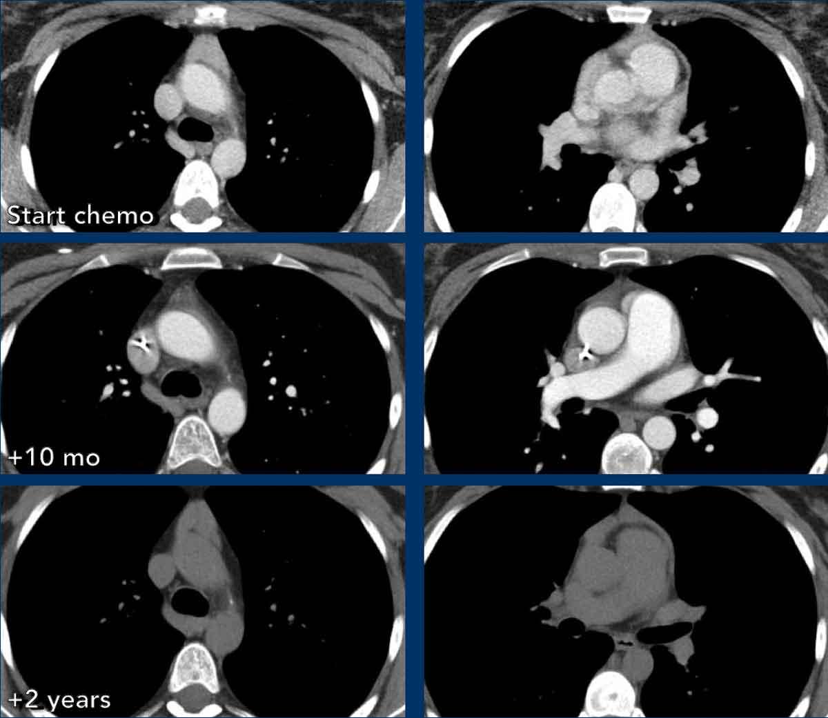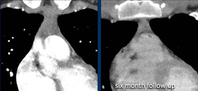 Tại thời điểm theo dõi sáu tháng, tuyến ức có hình ảnh bình thường.