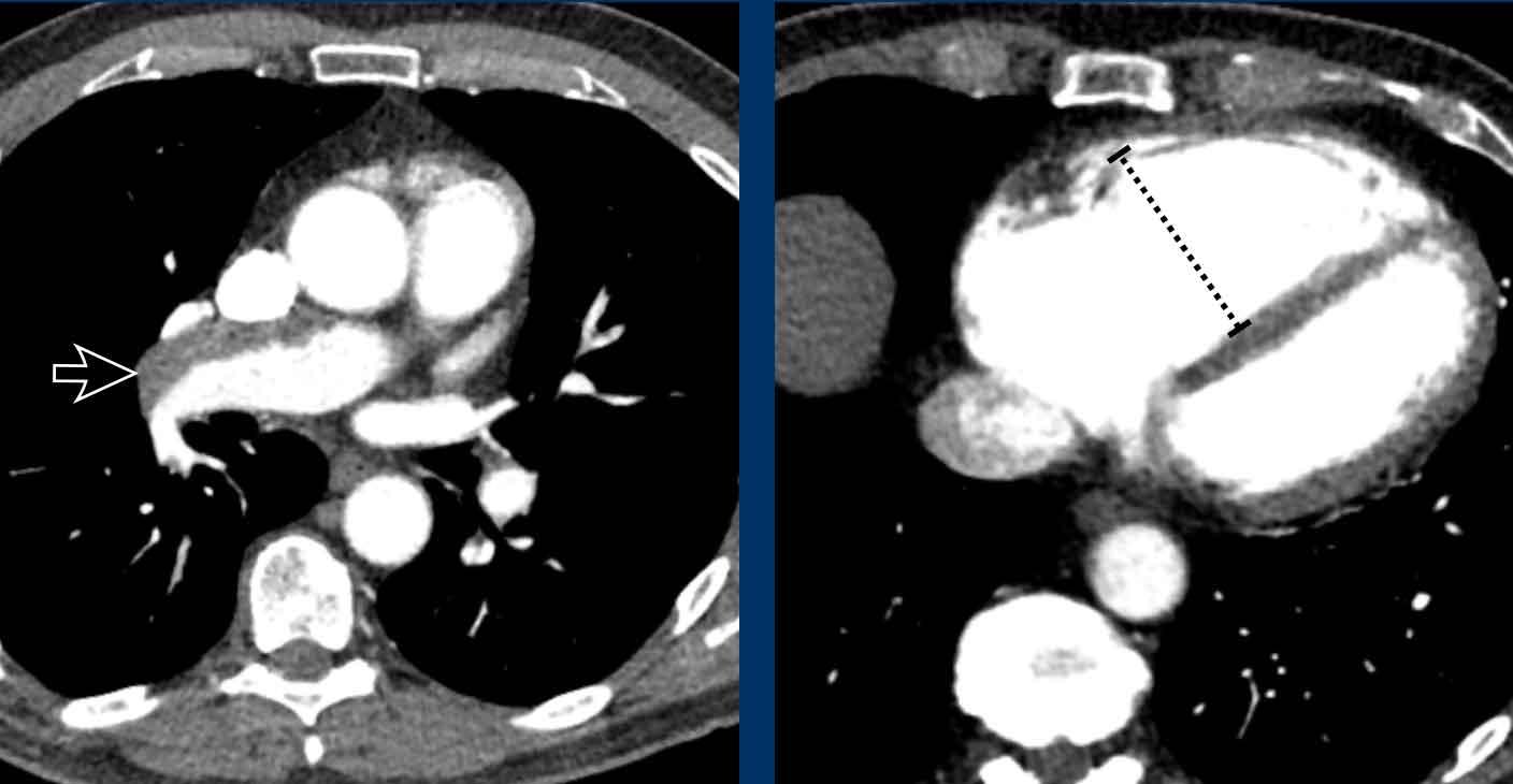Trong bối cảnh cấp tính, thuyên tắc huyết khối ồ ạt có thể dẫn đến tắc nghẽn đường ra và phồng giãn thất phải, tình trạng này có mối tương quan nghịch với tỷ lệ bệnh tật và tử vong.
