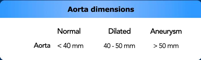 Tuy nhiên, có tính đến các sai số nêu trên, điều quan trọng là không được bỏ sót một động mạch chủ giãn đáng kể vì có nguy cơ vỡ tăng cao, đặc biệt ở những bệnh nhân có kích thước động mạch chủ đoạn gần vượt quá 55 mm.
