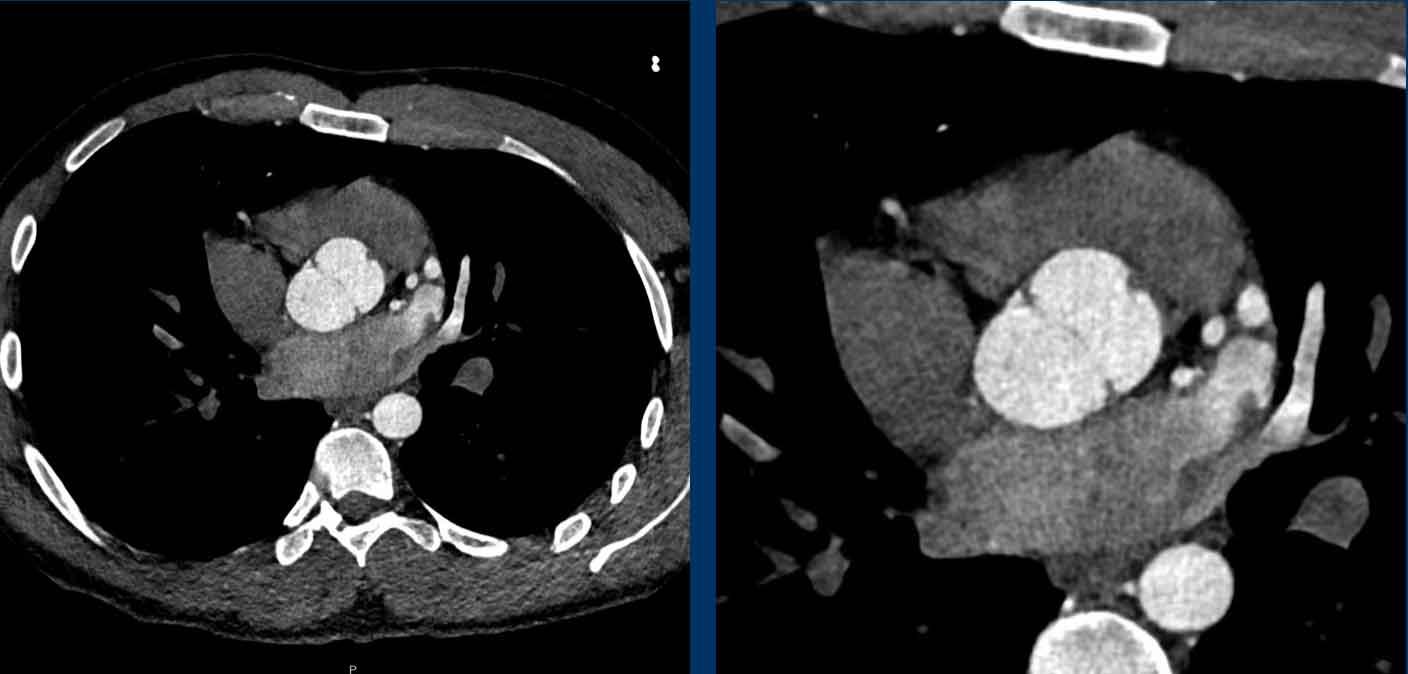 Giãn phình nặng xoang động mạch chủ và động mạch chủ đoạn lên.