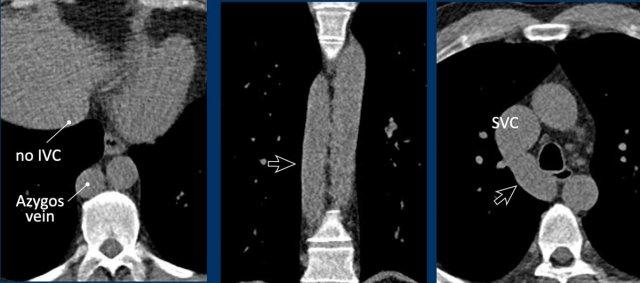 Tĩnh mạch chủ dưới tiếp nối qua tĩnh mạch đơn cho thấy hình ảnh đặc trưng ‘động mạch chủ đôi’ ở mức trụ hoành, và sự giãn của tĩnh mạch đơn kéo dài đến điểm nối với tĩnh mạch chủ trên.