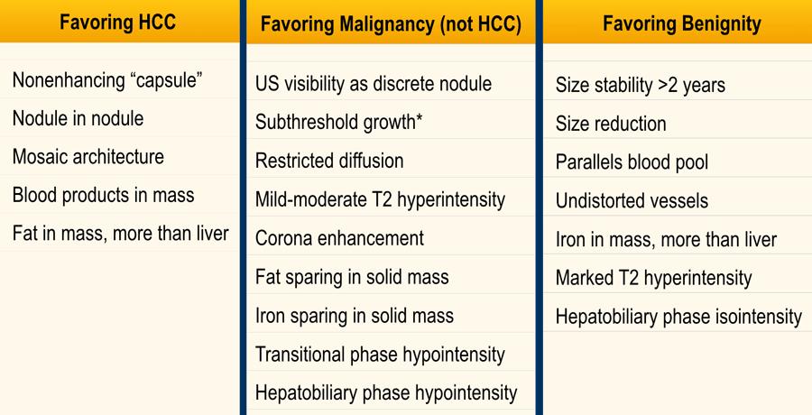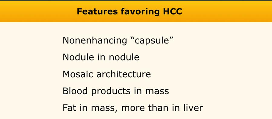 Ngoài ra, sự vắng mặt của các đặc điểm hình ảnh điển hình của HCC cần gợi lên nghi ngờ về một loại ác tính khác.