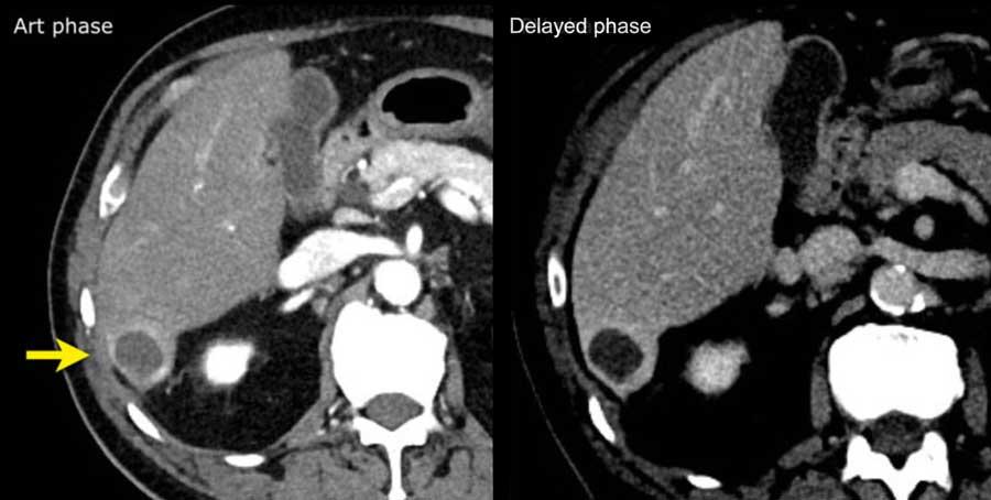 Các thì chụp CT bắt buộc bao gồm: thì động mạch muộn, thì tĩnh mạch cửa và thì muộn.
