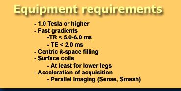 Mặc dù một số chuyên gia ủng hộ việc sử dụng cuộn dây body để chụp cả ba vùng, cuộn dây bề mặt sẽ cải thiện đáng kể chất lượng hình ảnh. Đặc biệt ở cẳng chân và bàn chân, cuộn dây bề mặt là bắt buộc.