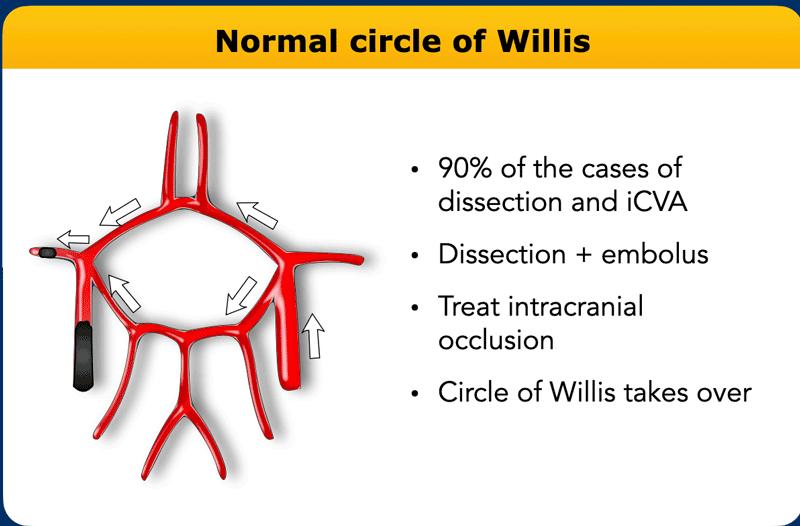 Trong những trường hợp đó, chỉ cần điều trị tắc nghẽn nội sọ là đủ, và động mạch cảnh bị bóc tách có thể không cần can thiệp.