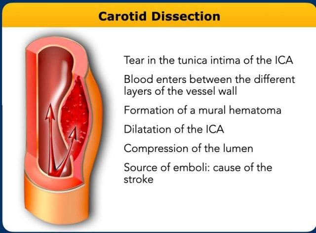 Bóc tách động mạch cảnh là hậu quả của một vết rách ở lớp nội mạc thành mạch.