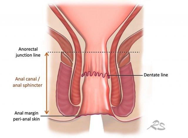 - Bờ hậu môn (da quanh hậu môn) và/hoặc ống hậu môn có bị xâm lấn hay không.