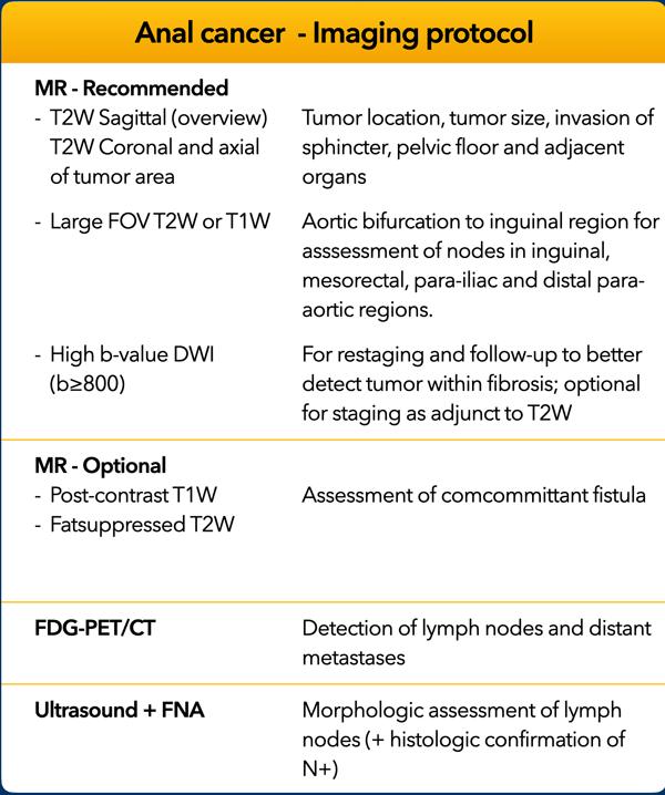 Mô tả vị trí khối u và sự liên quan của da quanh hậu môn, các lớp khác nhau của cơ thắt hậu môn và sàn chậu không ảnh hưởng đến giai đoạn T nhưng có vai trò quan trọng trong việc hỗ trợ lập kế hoạch điều trị bằng xạ trị và/hoặc phẫu thuật.