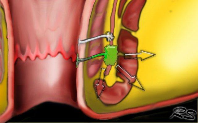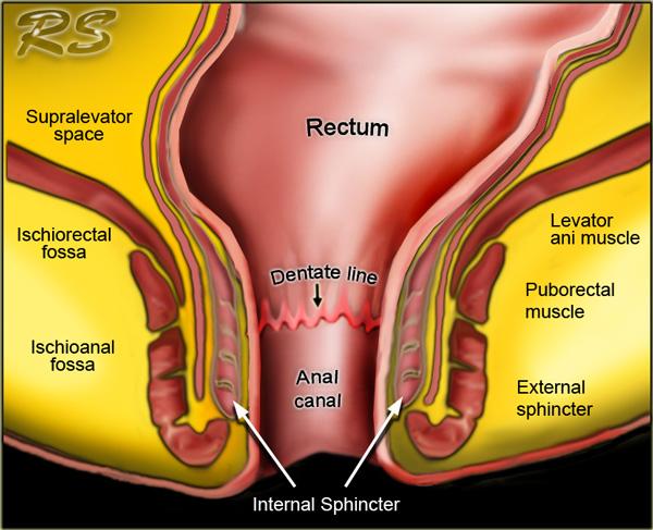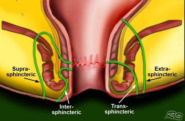 Bên trái là một ví dụ về rò trên cơ thắt.