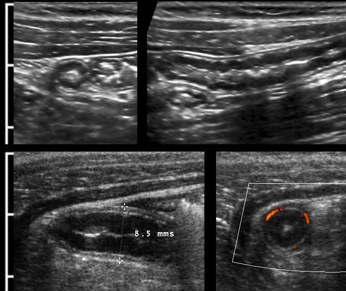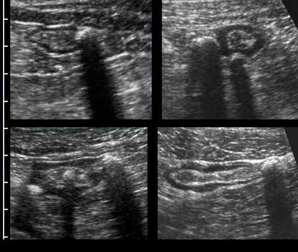 Tất nhiên còn có các đặc điểm siêu âm bổ sung trong viêm ruột thừa tiến triển, như các ổ dịch và mất cấu trúc lớp, nhưng trong những trường hợp này rõ ràng là ruột thừa đã bị viêm.