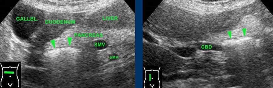 Chúng biểu hiện dưới dạng một phản xạ (đường cong) tuyến tính trong đầu tụy.