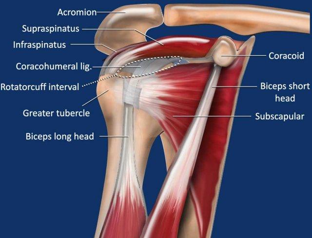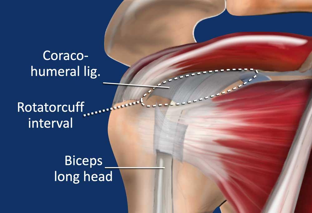Trong khoảng này, chỏm xương cánh tay không được che phủ bởi chóp xoay mà thay vào đó được che phủ bởi phần trong khớp của gân đầu dài cơ nhị đầu, được giữ vững bởi dây chằng quạ-cánh tay.