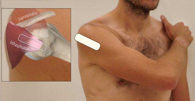Việc kiểm tra gân cơ dưới gai có thể gặp nhiều khó khăn do khó phân biệt với gân cơ trên gai. Tư thế tối ưu để quan sát gân cơ dưới gai là yêu cầu bệnh nhân đặt tay lên vai đối bên.