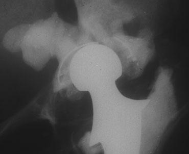 Trong các trường hợp thay khớp háng không xi măng ổn định, các vùng thấu quang tại giao diện kim loại-xương có thể xuất hiện, do thông thường sự kết hợp giữa sự phát triển xương vào và sự phát triển mô xơ vào cung cấp sự cố định trong hầu hết các trường hợp.
