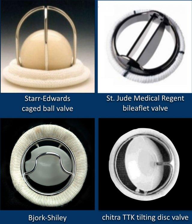 Các hình ảnh minh họa một số ví dụ về van tim cơ học.