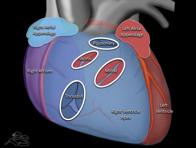 Ống cannula dòng vào được đưa vào mỏm tim và ống cannula dòng ra (không cản quang) được nối với động mạch chủ lên.