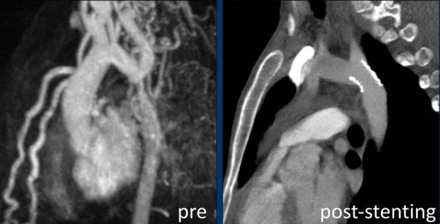 Liệu pháp đặt stent nội mạch được xem là lựa chọn điều trị hàng đầu cho hầu hết người lớn và thanh thiếu niên mắc hẹp eo động mạch chủ (tài liệu tham khảo).