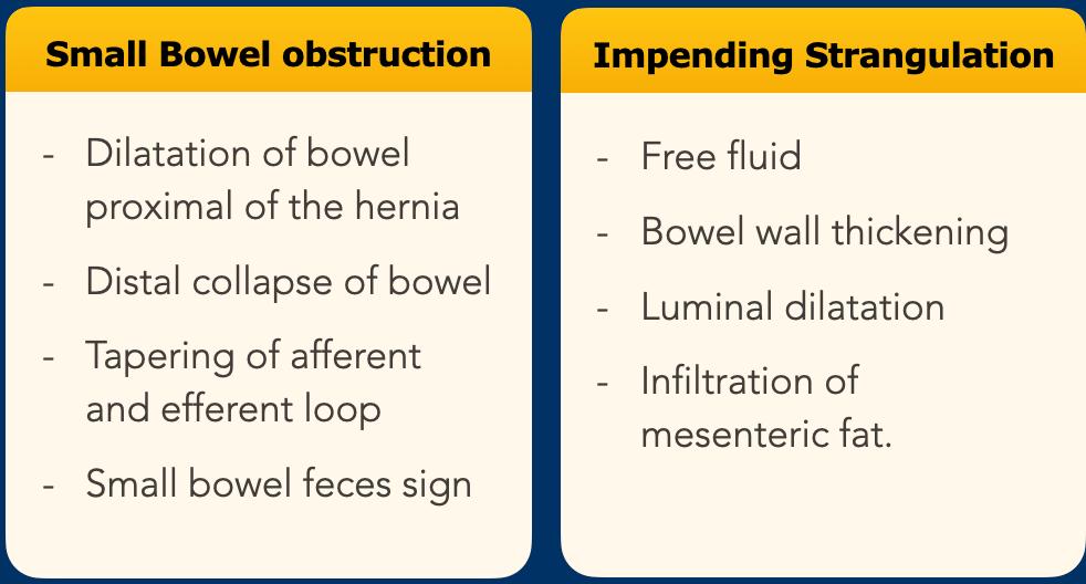 Thoát vị nghẹt có thể được chẩn đoán dựa trên hai đặc điểm riêng biệt, đó là tắc ruột non và các dấu hiệu của tình trạng thắt nghẹt sắp xảy ra.