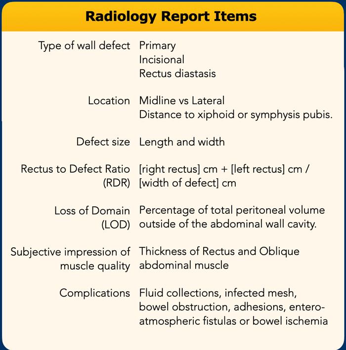 - Tình trạng của hệ thống cơ thành bụng và tỷ lệ giữa khiếm khuyết và chiều rộng của các cơ thẳng bụng (RDR).