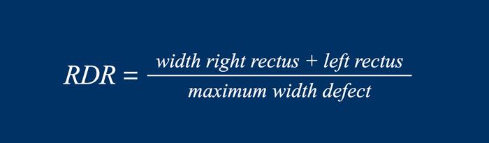Tỷ lệ Cơ thẳng bụng trên Khuyết tật (RDR) là tỷ số giữa tổng chiều rộng của cơ thẳng bụng trái và phải so với chiều rộng của thoát vị.