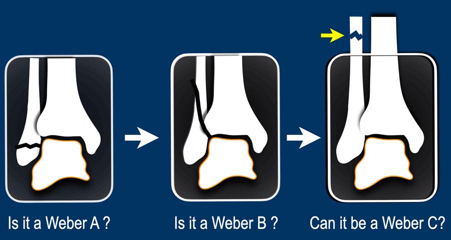 Câu hỏi đầu tiên: Đây là gãy xương Weber A, B hay có thể là Weber C? Sau đó hãy cố gắng xác định giai đoạn và đánh giá xem cổ chân ổn định hay không ổn định.