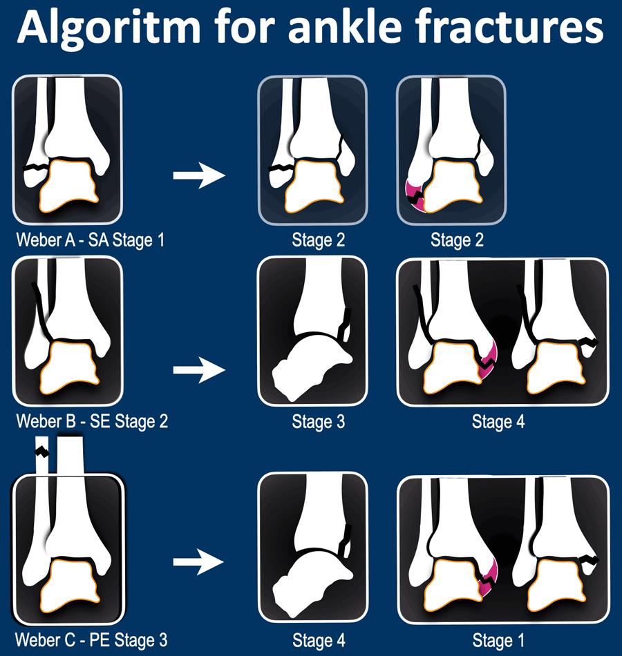 Thuật toán được xây dựng dựa trên phân loại Weber, vì đây là phân loại đơn giản và được sử dụng rộng rãi. Do phân loại Weber là sự đơn giản hóa của phân loại Lauge-Hansen, thuật toán này cũng sẽ giúp bạn hiểu rõ hơn về các giai đoạn khác nhau trong phân loại Lauge-Hansen.