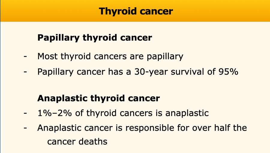 Phần lớn các ung thư tuyến giáp được phát hiện tình cờ có nguồn gốc từ thể nhú, loại này, không giống như ung thư tuyến giáp thể không biệt hóa (chịu trách nhiệm cho hơn một nửa số ca tử vong do ung thư tuyến giáp mặc dù chỉ chiếm 1%–2% các trường hợp), thường có diễn tiến chậm.