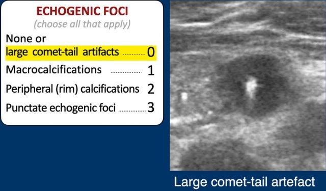 Không có điểm bổ sung nào được tính thêm. Điều này cũng áp dụng cho các nhân dạng xốp, vốn có bản chất lành tính và không cần đánh giá thêm bằng siêu âm.