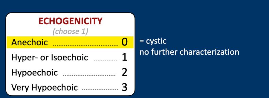 Nếu không thể đánh giá chính xác độ hồi âm (ví dụ: do sự hiện diện của các vôi hóa), mặc định sẽ được tính 1 điểm.