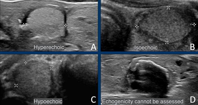 Độ hồi âm được đánh giá so với nhu mô tuyến giáp bình thường.