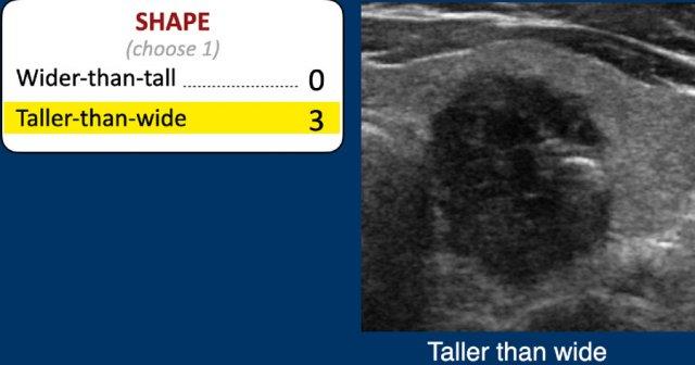 Hình dạng cao hơn rộng là yếu tố dự báo mạnh cho ác tính, và do đó được tính 3 điểm.