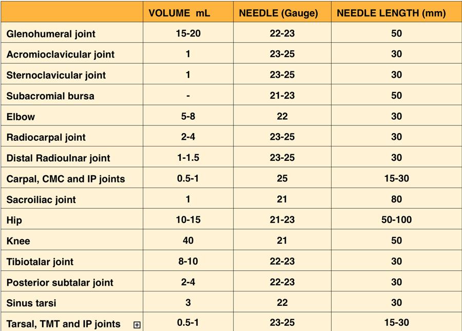 Đối với việc chọc hút khớp, có thể cần sử dụng kim có lòng kim lớn hơn do độ nhớt cao của dịch hút. Trong những trường hợp như vậy, thuốc gây tê tại chỗ được chỉ định.