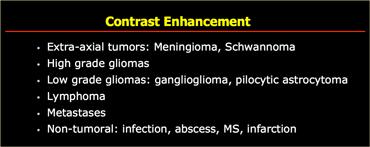 Các u ngoài trục không có nguồn gốc từ mô não và không có hàng rào máu não, do đó hầu hết chúng ngấm thuốc đồng nhất.