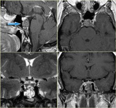 Hình bên trái là hình ảnh của một khối u trong bể trên yên.