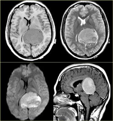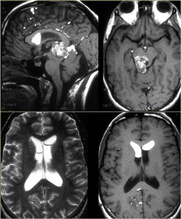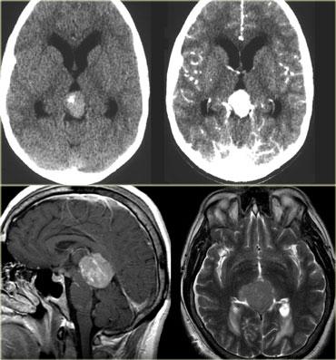 Hình bên trái là một khối u nằm ở vùng tuyến tùng.
