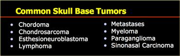 Các khối u nền sọ thường gặp được liệt kê trong bảng bên trái.