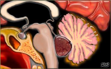Có một khối u nằm ở vùng tuyến tùng.