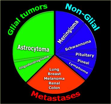 Xấp xỉ một phần ba u hệ thần kinh trung ương là tổn thương di căn, một phần ba là u thần kinh đệm (glioma) và một phần ba có nguồn gốc không phải từ tế bào thần kinh đệm.