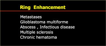 Ngấm thuốc dạng vòng được thấy trong di căn não và u thần kinh đệm độ cao.
