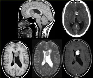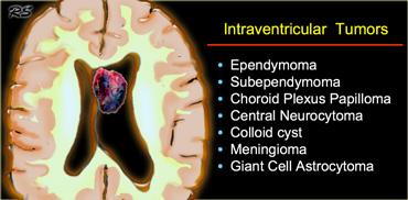 Các khối u trong não thất thường gặp được liệt kê trong bảng bên trái.