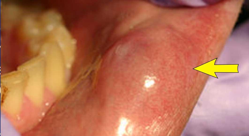 Nếu tổn thương xuất phát từ tuyến dưới lưỡi bị tắc nghẽn, nó được gọi là nang nhái (ranula).