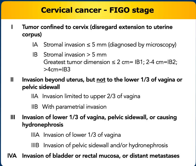 Hệ thống phân loại giai đoạn của Liên đoàn Phụ khoa và Sản khoa Quốc tế (FIGO) được sử dụng phổ biến nhất để phân giai đoạn ung thư cổ tử cung, vốn được thiết kế theo truyền thống như một hệ thống phân giai đoạn lâm sàng – phẫu thuật.