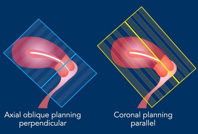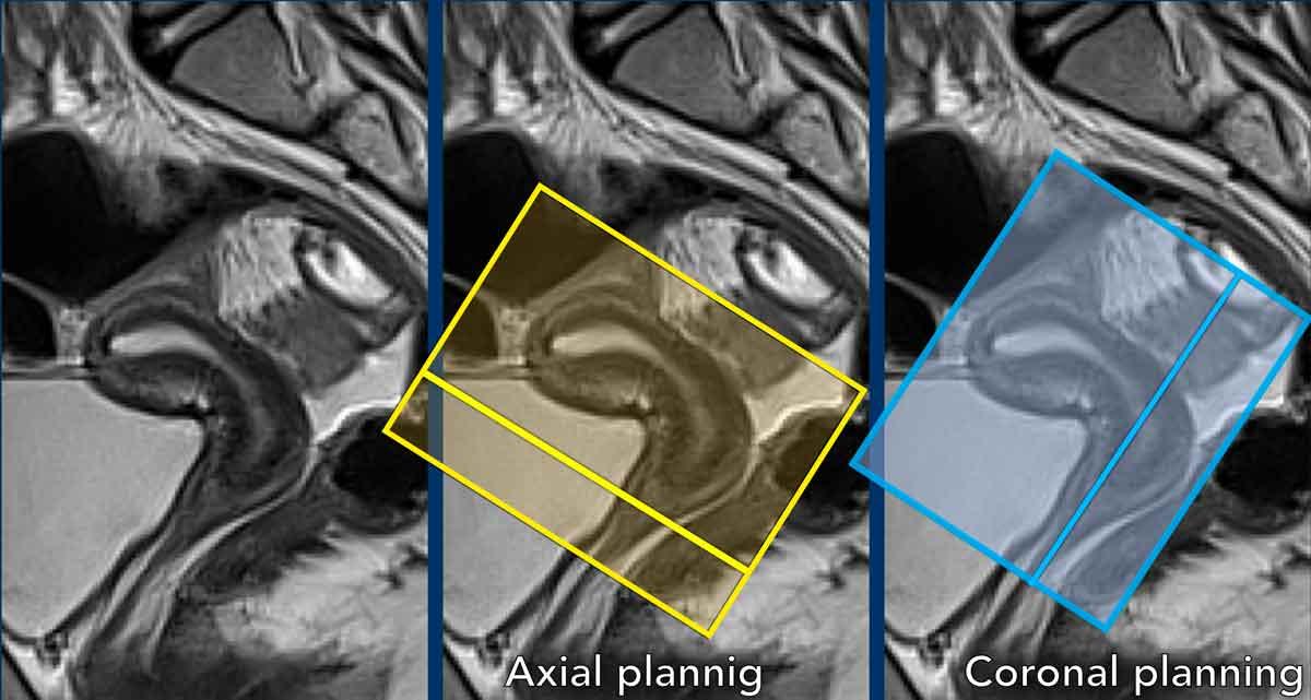 Cần tính đến vị trí của ống cổ tử cung và lập kế hoạch các chuỗi xung MRI vuông góc và song song tương ứng.