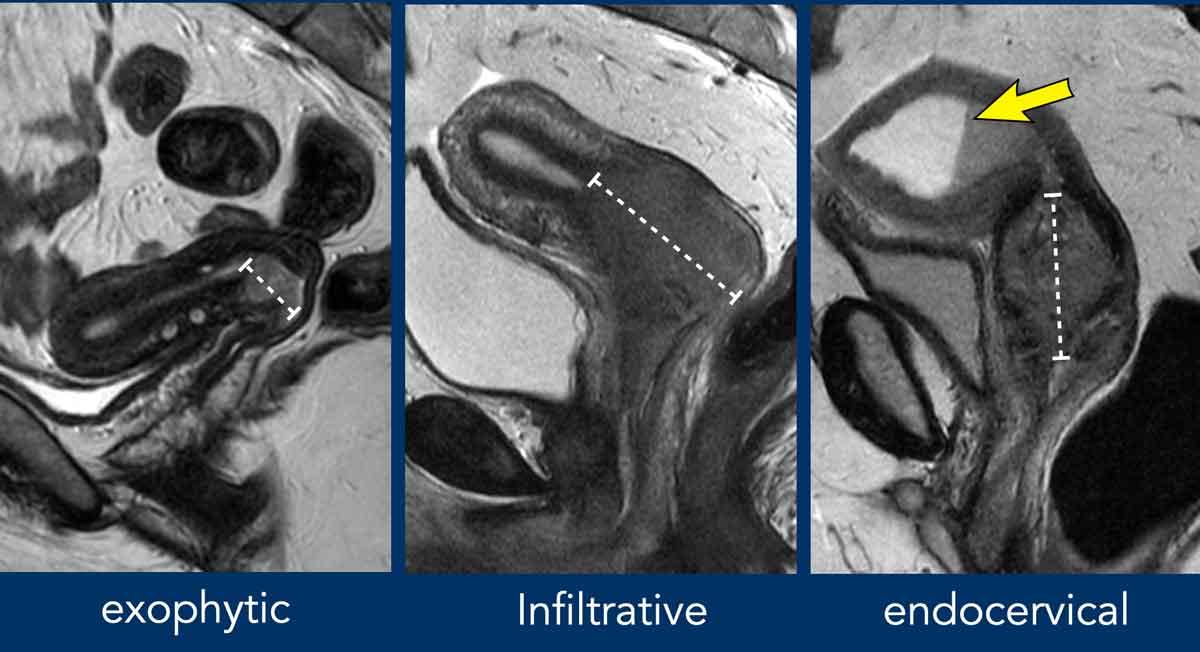 Lưu ý rằng hình ảnh sau tiêm thuốc tương phản từ không bắt buộc trong phân giai đoạn ung thư cổ tử cung.