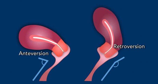 Trong trường hợp này, cổ tử cung ở tư thế nghiêng trước (anteversion) và thân tử cung ở tư thế gập sau (retroflexion).