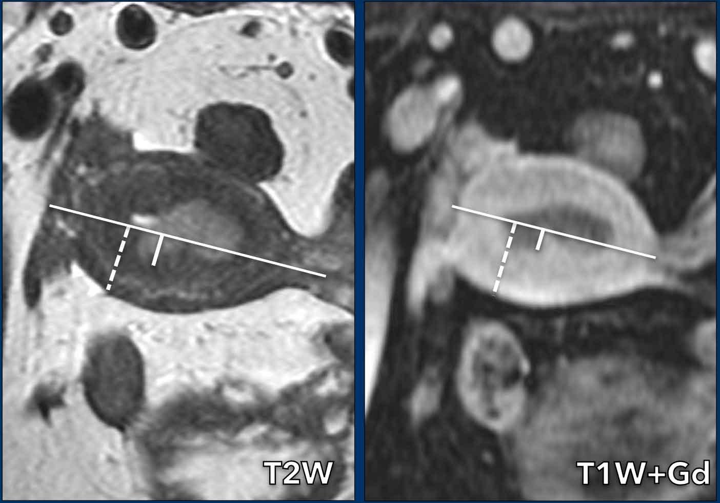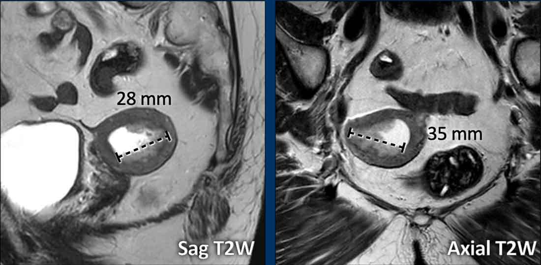 Bên cạnh thăm khám lâm sàng và giải phẫu bệnh, MRI đóng vai trò quan trọng trong việc xác định các bệnh nhân có bệnh tiến triển, từ đó hỗ trợ lập kế hoạch điều trị phẫu thuật.