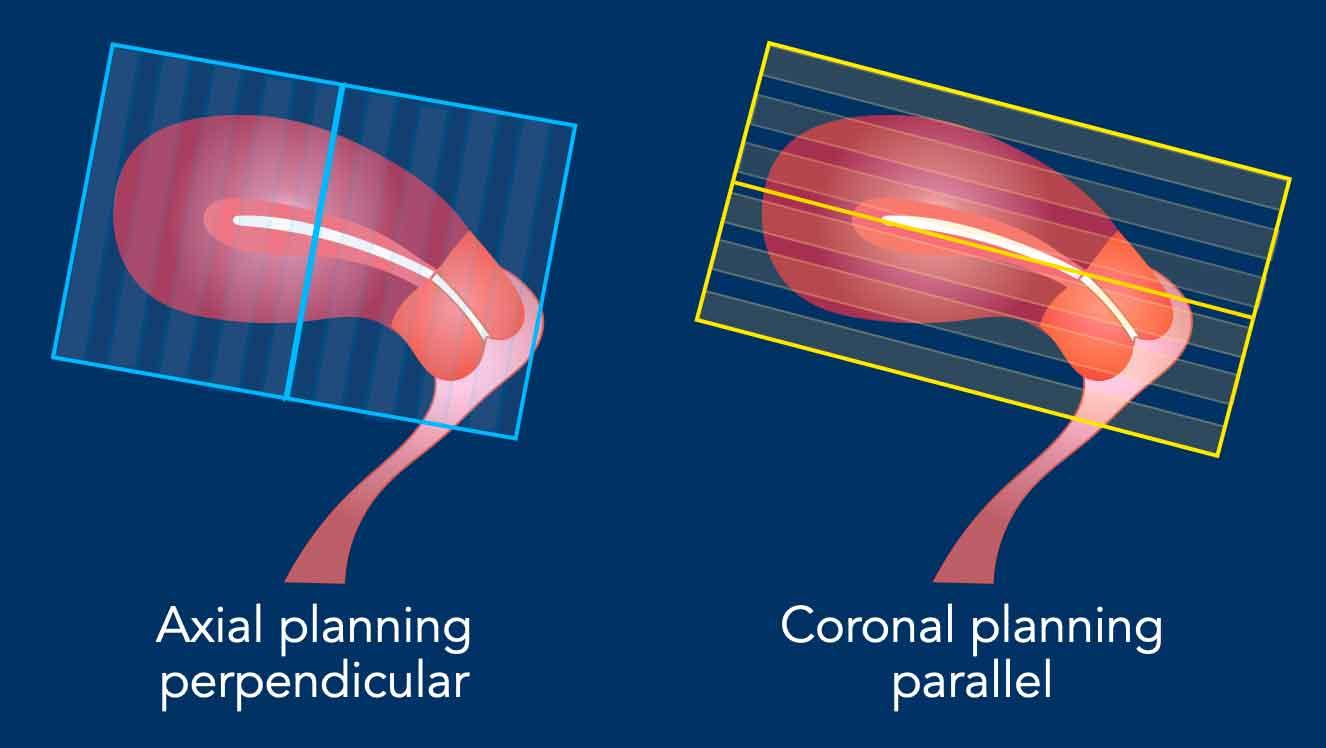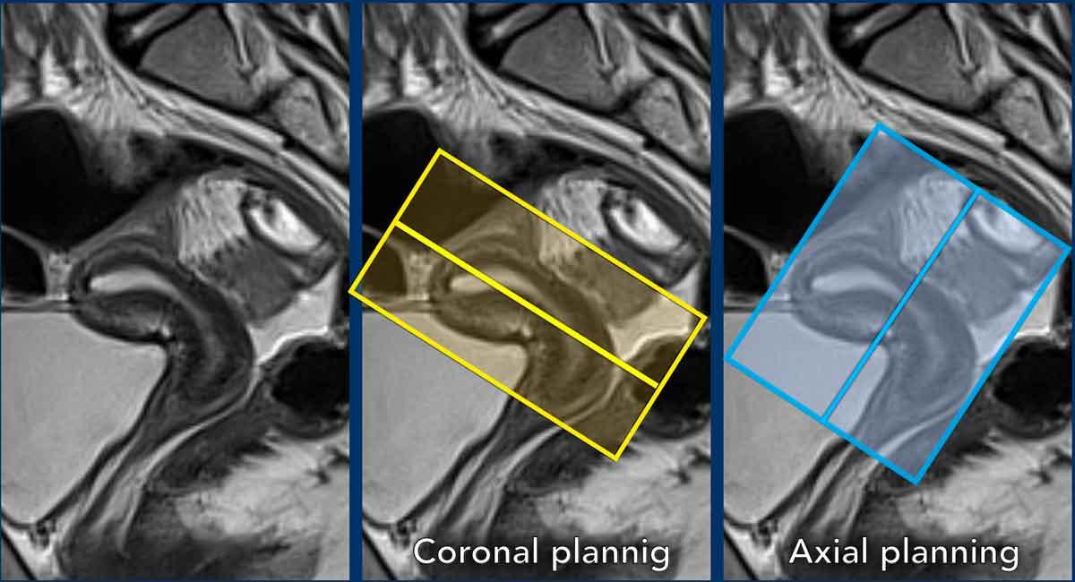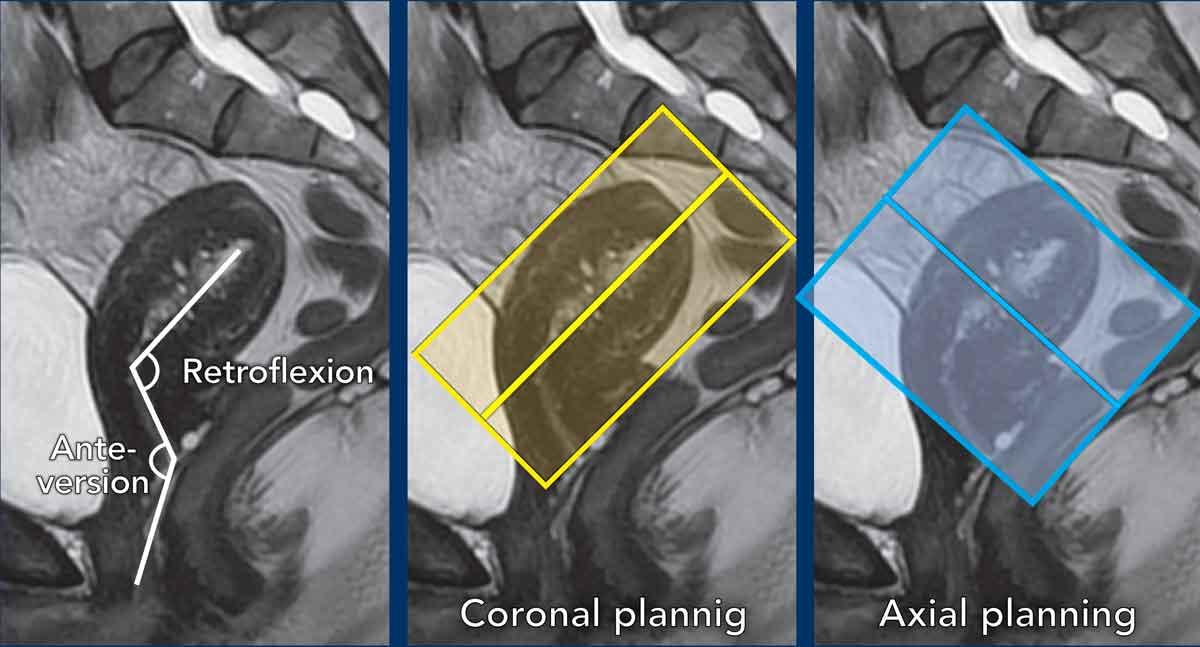 Cần tính đến vị trí của tử cung và lập kế hoạch các chuỗi xung MRI vuông góc và song song tương ứng.