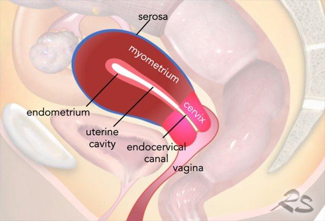 Điều quan trọng là phải phân biệt giãn rộng buồng tử cung với xâm lấn cơ tử cung.