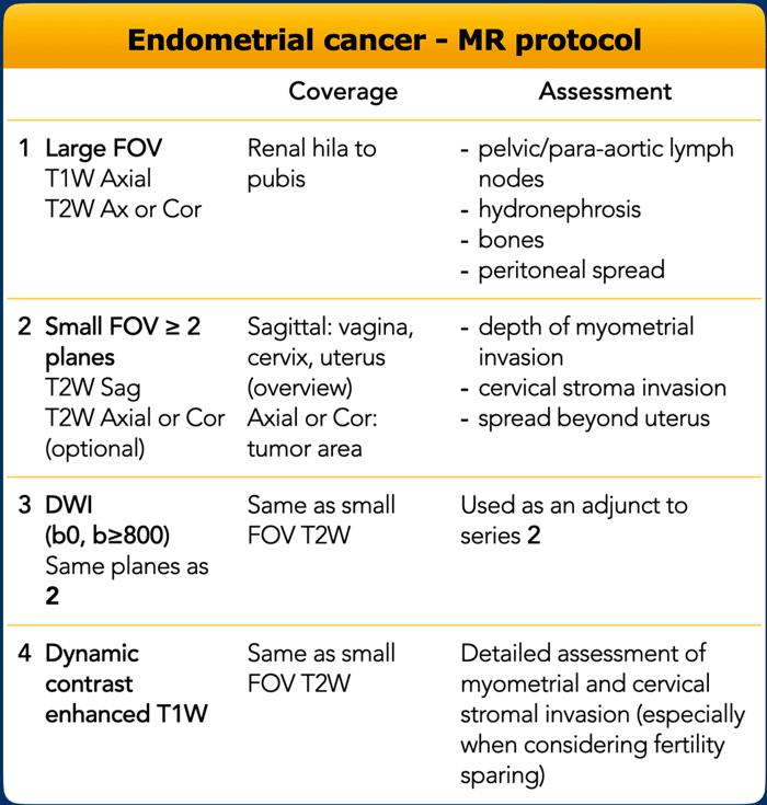 Do đó, chụp DCE là bắt buộc để phân giai đoạn ung thư nội mạc tử cung ở các bệnh nhân trẻ tuổi mà điều trị bảo tồn khả năng sinh sản được cân nhắc như một lựa chọn điều trị tiềm năng.
