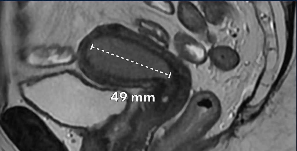 Các chuỗi xung MRI được lập kế hoạch dựa trên trục dài của buồng tử cung.